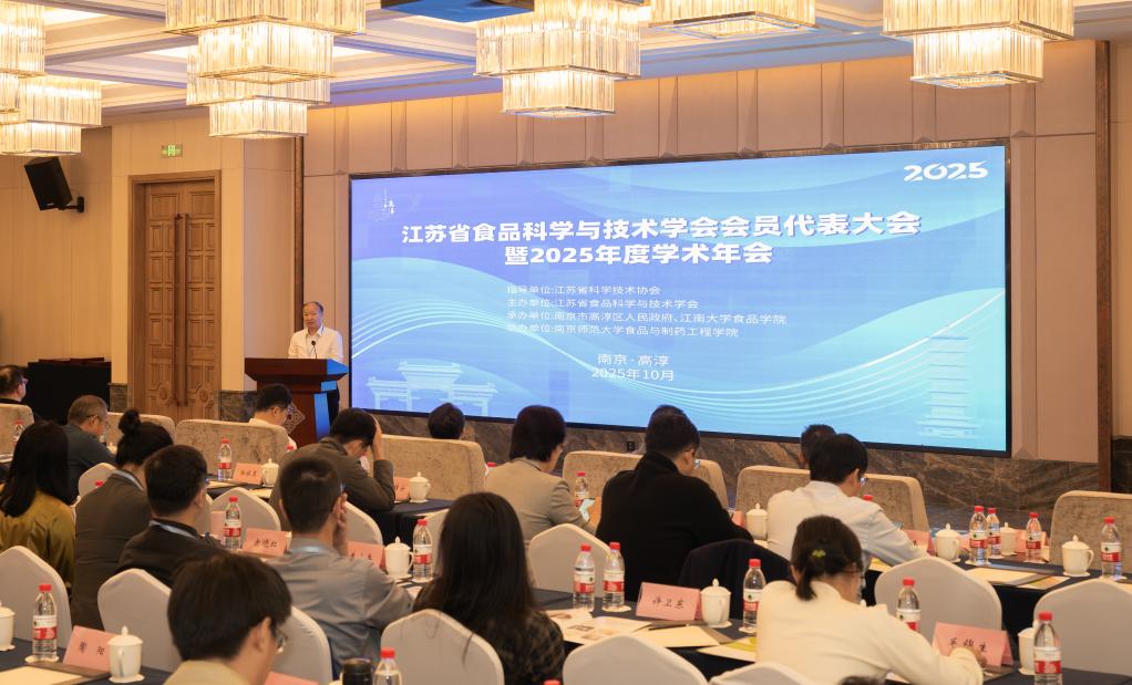 10月18日,江苏省食品科学与技术学会会员代表大会暨2025年度学术年会在南京高淳金陵大酒店举行。本次大会以“食科创新筑根基,健康江苏启新程”为主题,汇聚中国工程院院士、江南大学陈坚教授,中国工程院院士、南京师范大学副校长黄和教授,江苏省科协党组成员、副主席冯少东,江南大学党委常委、副校长李兆丰教授,江苏省食品科学与技术学会理事长、江南大学食品学院顾正彪教授,上海交通大学农业与生物学院院长艾连中教授,国家粮食和物资储备局科学研究院谭斌研究员,南京市科协党组书记、主席朱军,江苏省科协学会学术部部长岳智顺,高淳区领导李蓓、孔和云、孔令杰等全省食品领域高校科研人员、企业代表、学会理事近200名会员代表参会。