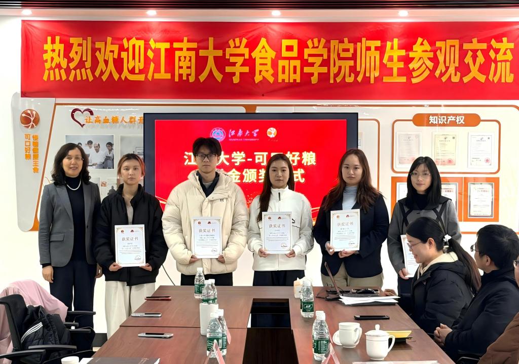 为持续深化校企协同育人机制,精准对接产业发展需求,探索校企合作新路径,3月3日上午,我院党委书记傅莉莉、党委副书记兼副院长陈勇、可口好粮教育基金获奖师生代表等赴可口好粮(无锡)科技有限公司开展江南大学“优企引才”访企拓岗促就业专项行动,并举行首届可口好粮奖学奖教金颁奖仪式。