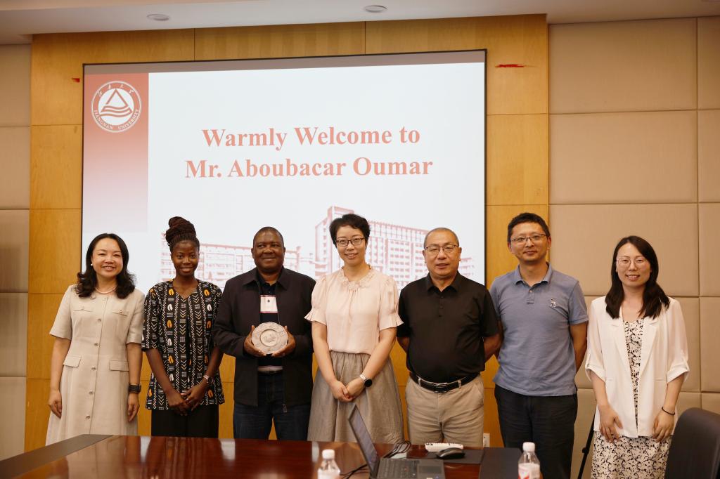 Oumar是食品学院的优秀校友,曾先后在原无锡轻工大学获硕博学位。他长期致力于食品科学与营养领域研究,学术成果丰硕,曾担任几内亚共和国高等教育与科学研究部部长,现任科纳克里大学高级研究服务部主任。此次返校访问Oumar还给全体留学生带来一场精彩的学术报告。