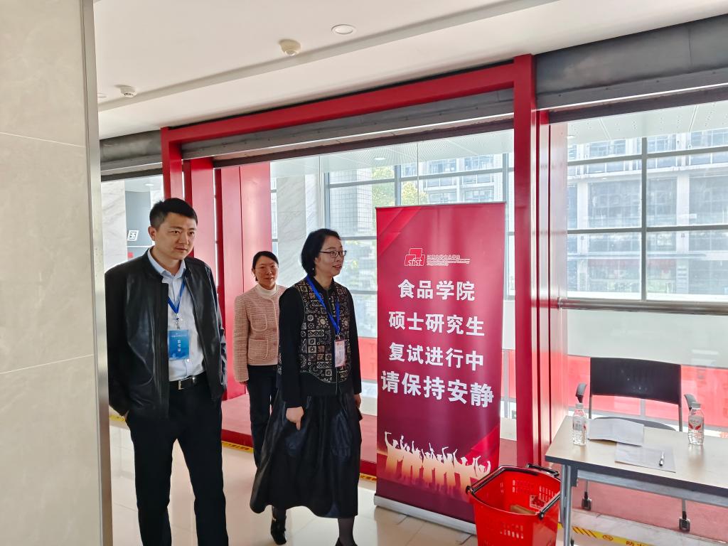 食品学院党委书记傅莉莉、院长孙秀兰、副院长柏玉香等学院领导深入各复试考场开展巡查指导,实地检查考场布置、现场观摩面试流程,对复试组织管理、考风考纪、应急保障等重点工作进行全面督导,并就优化考核流程、强化过程监督等关键问题提出具体指导意见。